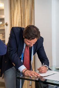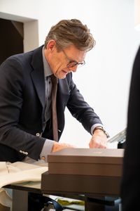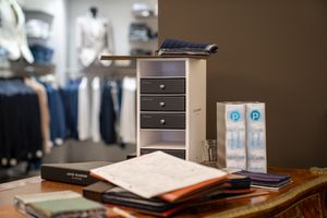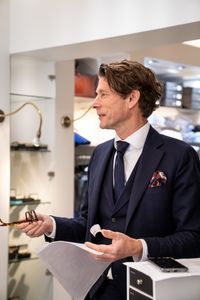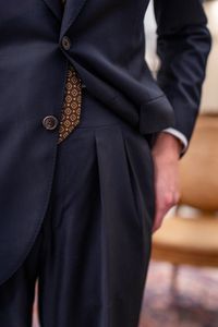 Na het bespreken van je voorkeuren kun je kiezen uit een uitgebreid aanbod aan stoffen. Ook kun je je pak personaliseren met details als stiksels, knopen, voeringen en zelfs je initialen. Vervolgens sturen we je order naar Italië, waar je outfit in productie wordt genomen